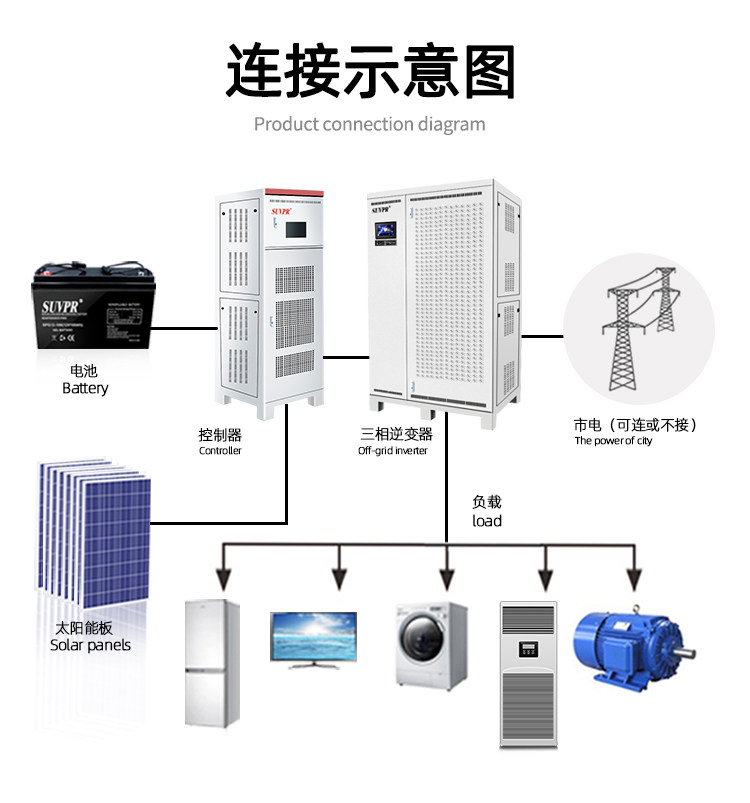 Solar power generator systems full range of large photovoltaic panels off-grid three-phase machines High power 100KW Industrial power