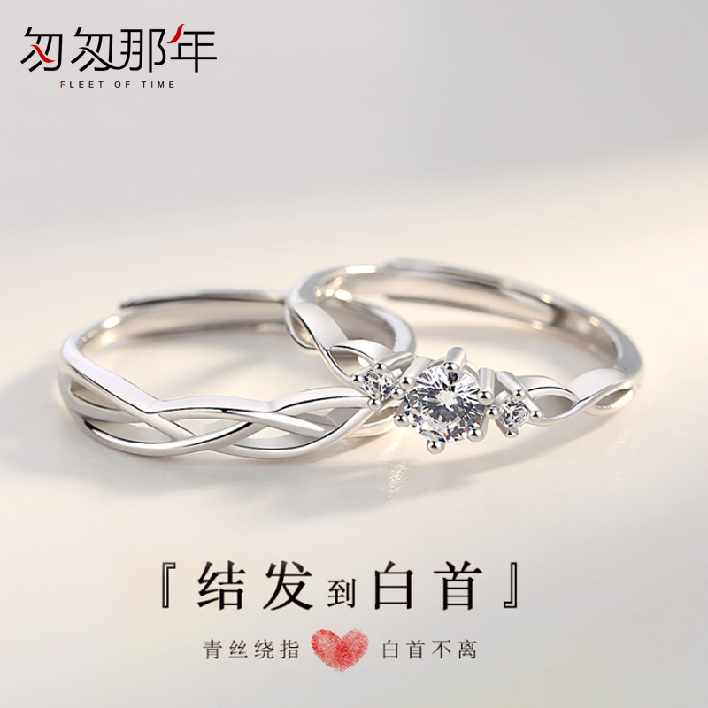 Lovers ring a pair of small crowddesign pure silver female male models for the ring courting wedding student minimalist opening adjustable lettering