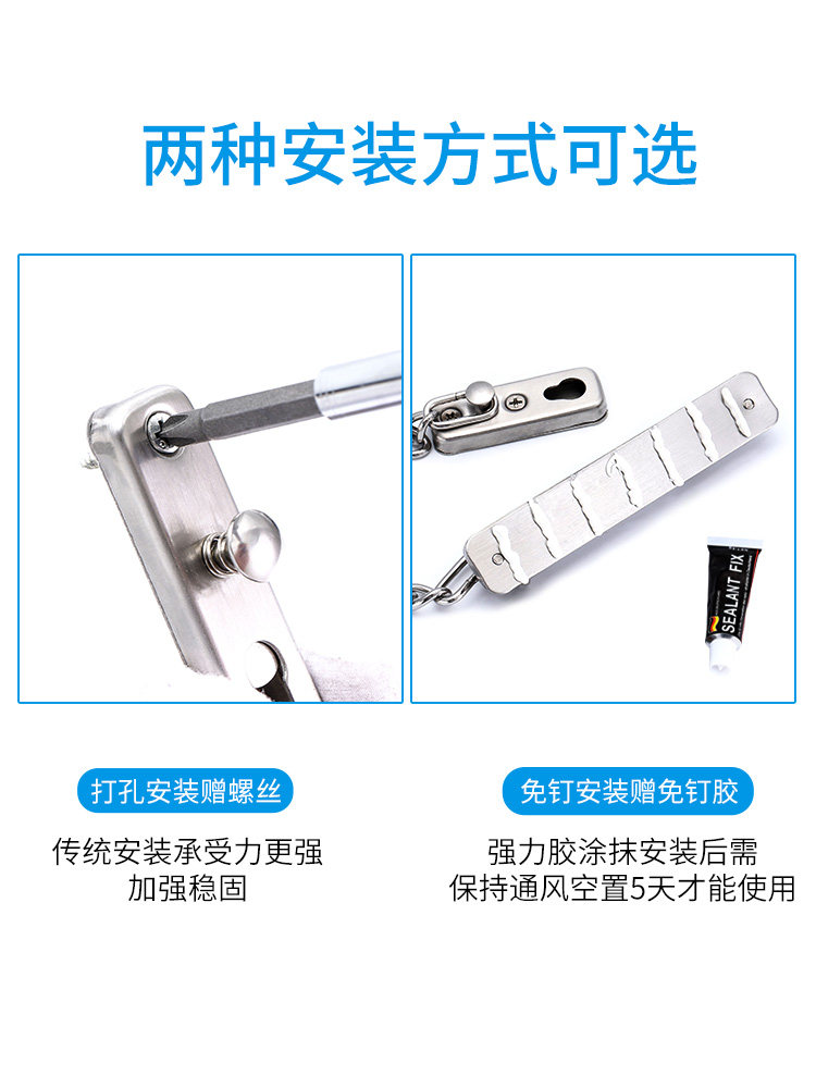 No-punch anti-leech chain Anti-lock inside the door Chain Household safety chain Door bolt Safety lock Door latch anti-theft buckle