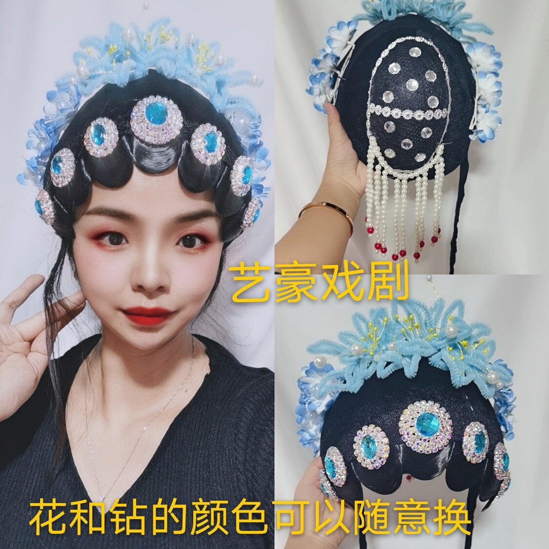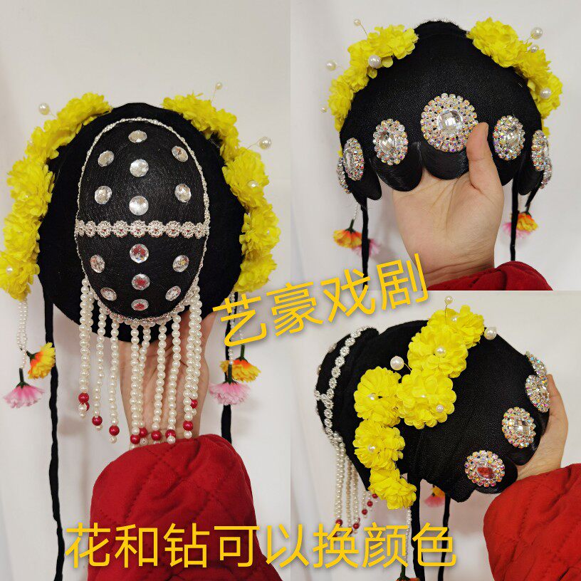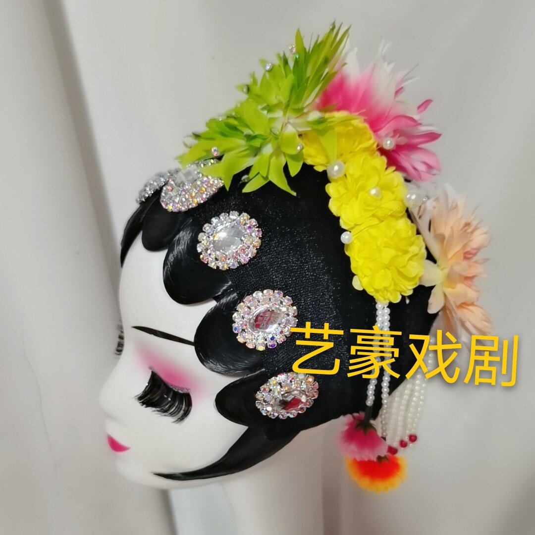 Green headdress green headdress curtain rose red headdress rose headdress red headdress curtain simulation of drama Beijing theatre Young dream dream dream dream dream dream branch curtain Jinseu Li cup dance headdress