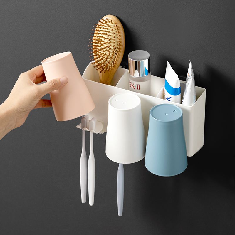Toothbrushing cup hanging wall-free toothpaste toothbrush shelve with makeup room dental cup holder wall-style toothbrush holder wall-mounted