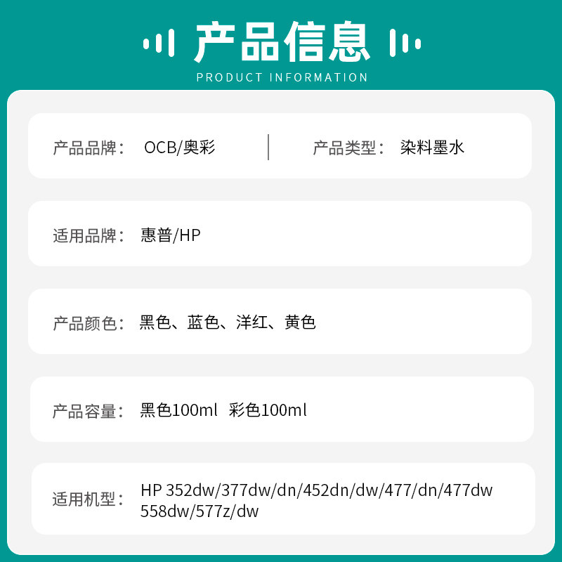 OCB applicable HP GT5820 5810 TANK310 410 Inform machine continuous ink supply system ink GT51 52 black color continuous ink supply system Inform