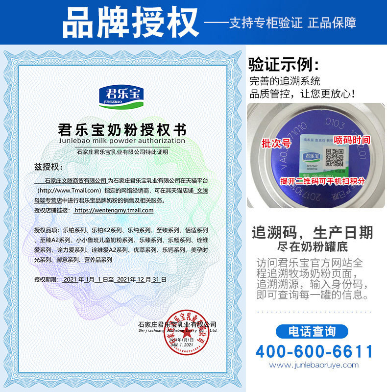 Junlebao milk powder 3 segments of Le pure can infant milk powder three segments of milk powder listen to the flagship official website