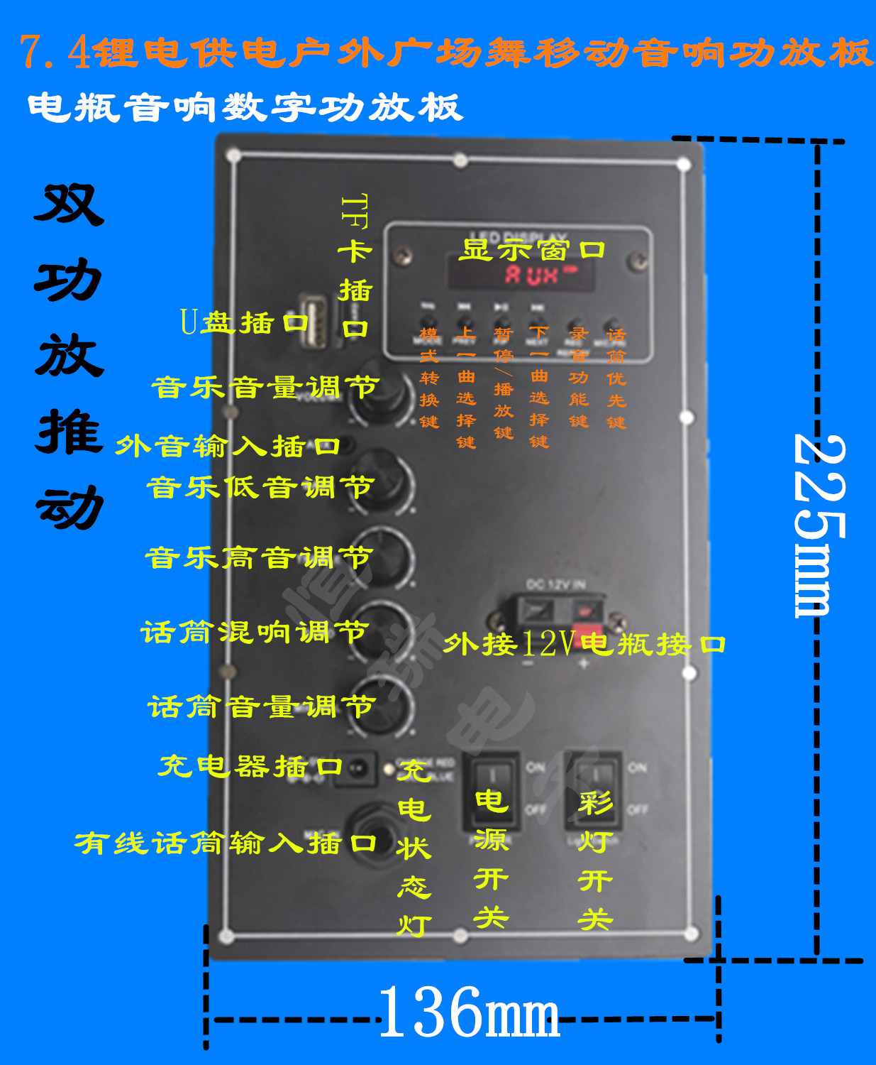7 4V LITHIUM POWER SUPPLY OUTDOOR RALEVER SQUARE DANCE SOUND POWER AMPLIFIER BOARD DOUBLE POWER AMPLIFIER WITH BLUETOOTH DIGITAL POWER AMPLIFIER BOARD