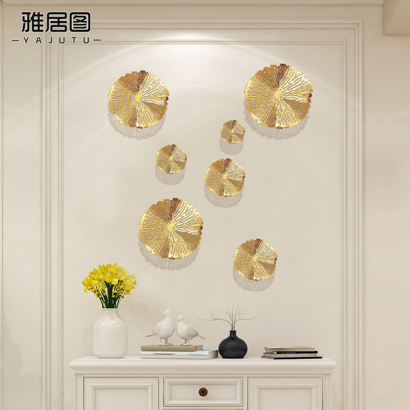 Modern simple three-dimensional wrought iron wall decoration Hanging metal hollow lotus leaf wall decoration Wall decoration