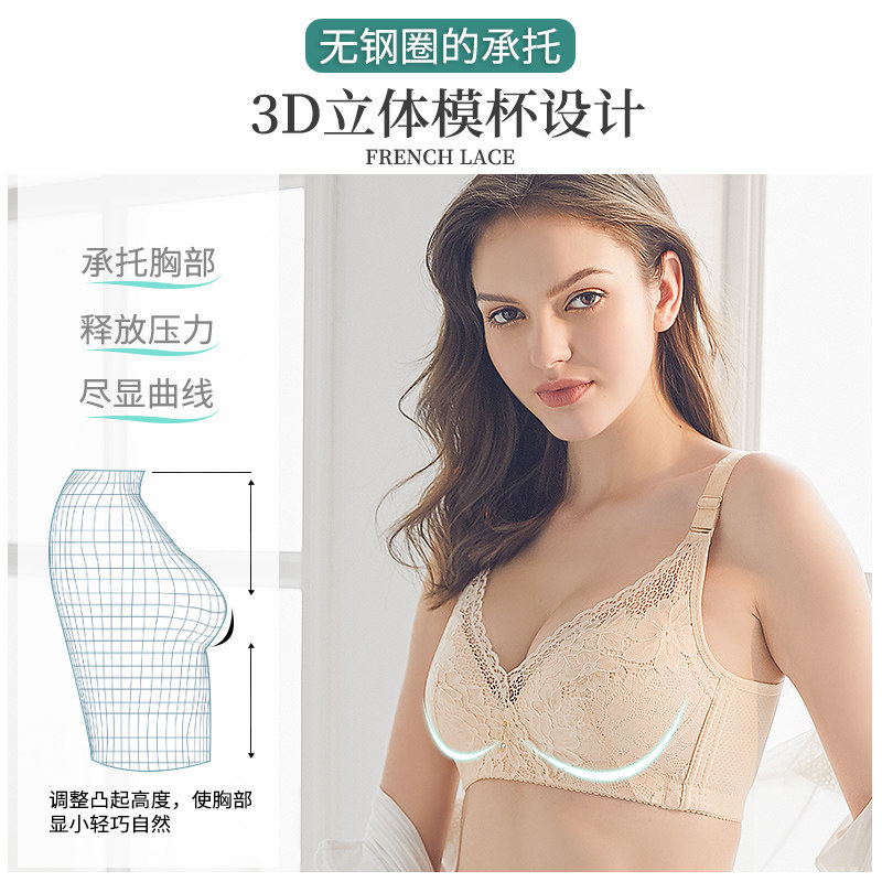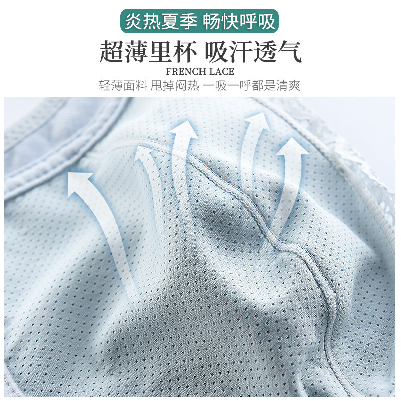 Summer underwear women's thin section big breasts show small artifact no steel ring gather large size underwear fat mm ultra-thin bra summer