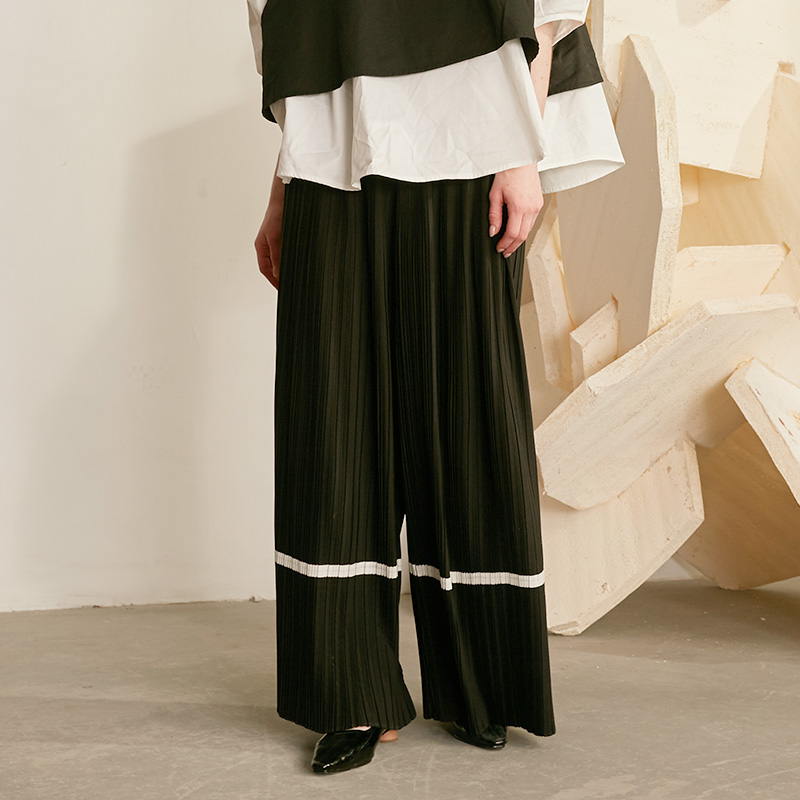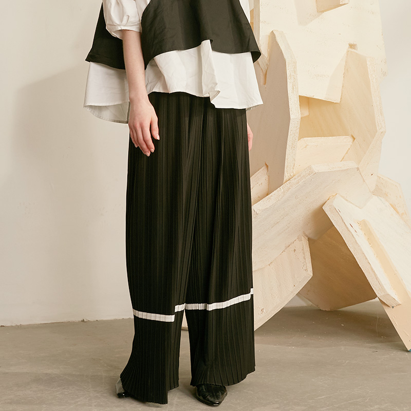 DIDDI Original Press Pleats Loose Long Pants Casual Large Size Pants Wide Pants Stripe Old Daddy Pants Thin section Independent design