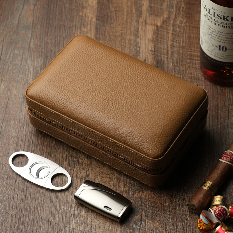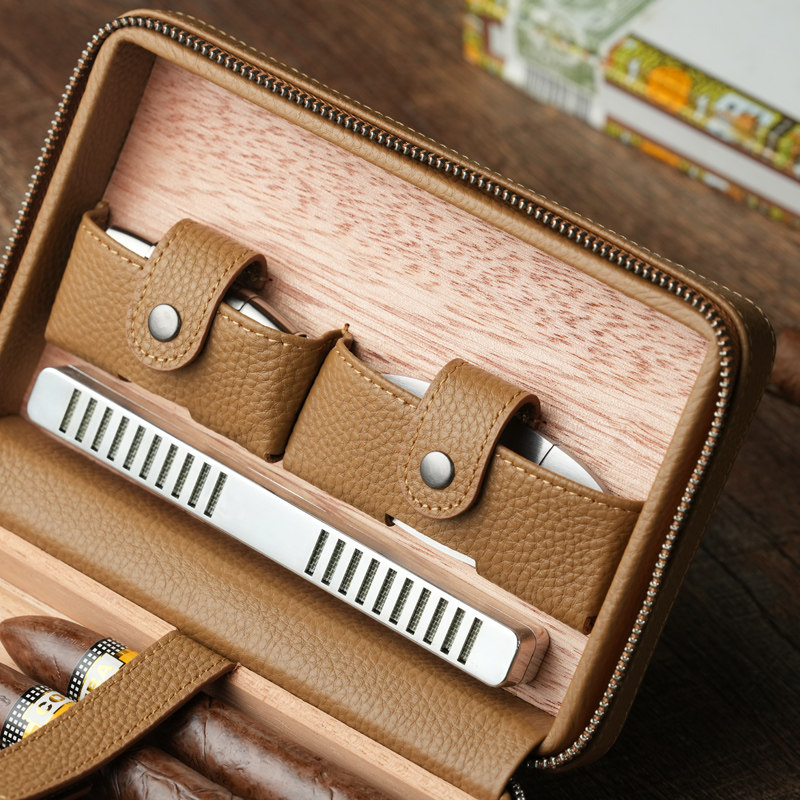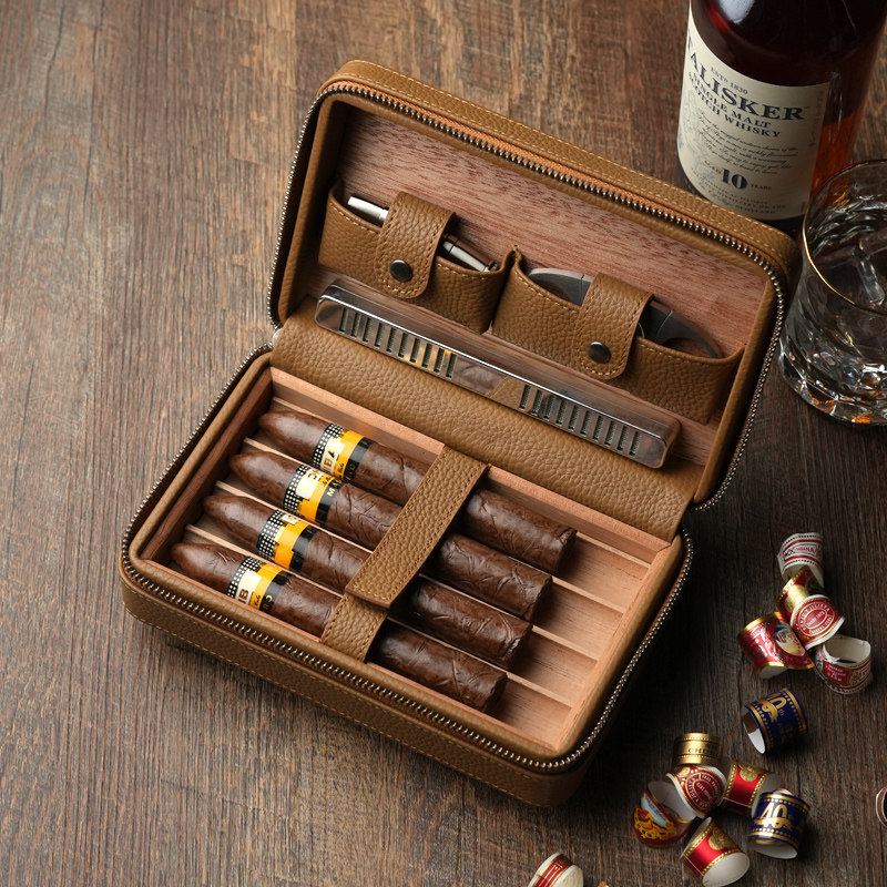 VANITYFAIR Bull Leather Cigar Case Portable Cedar Wood Moisturizing Box Scissors Windproof Lighter Tool Suit-Taobao