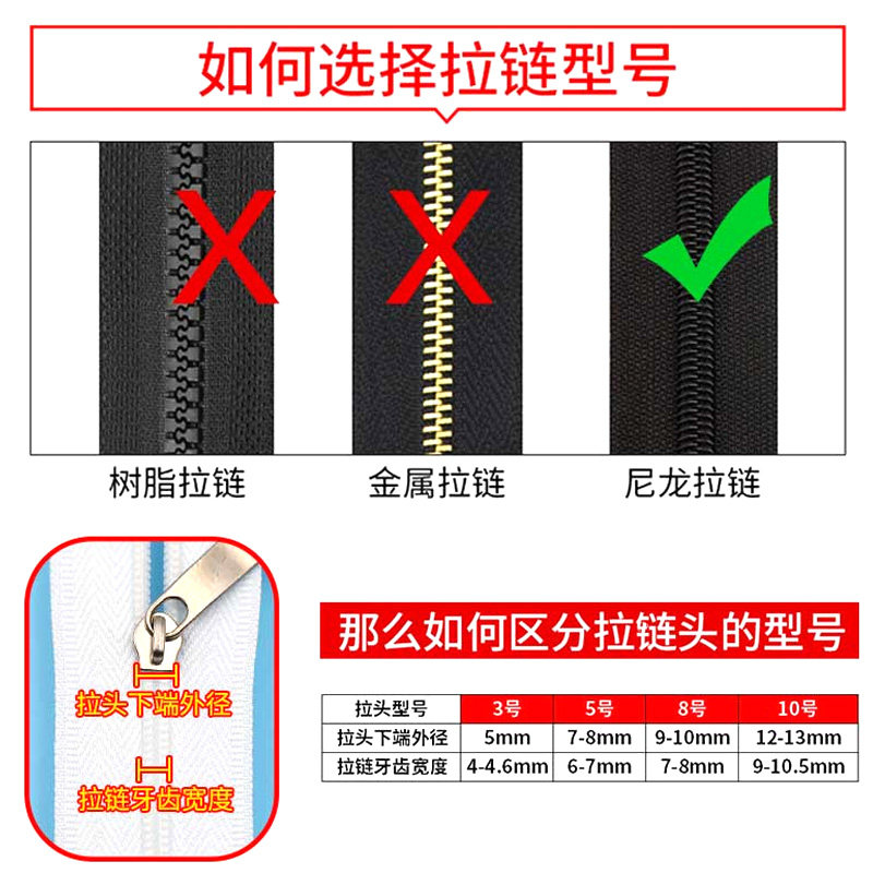 Thickened metal zipper head No 3 No 5 No 8 No 10 Duvet cover bag zipper Clothing accessories accessories Nylon zipper head