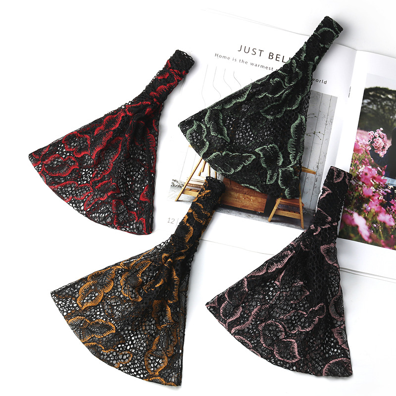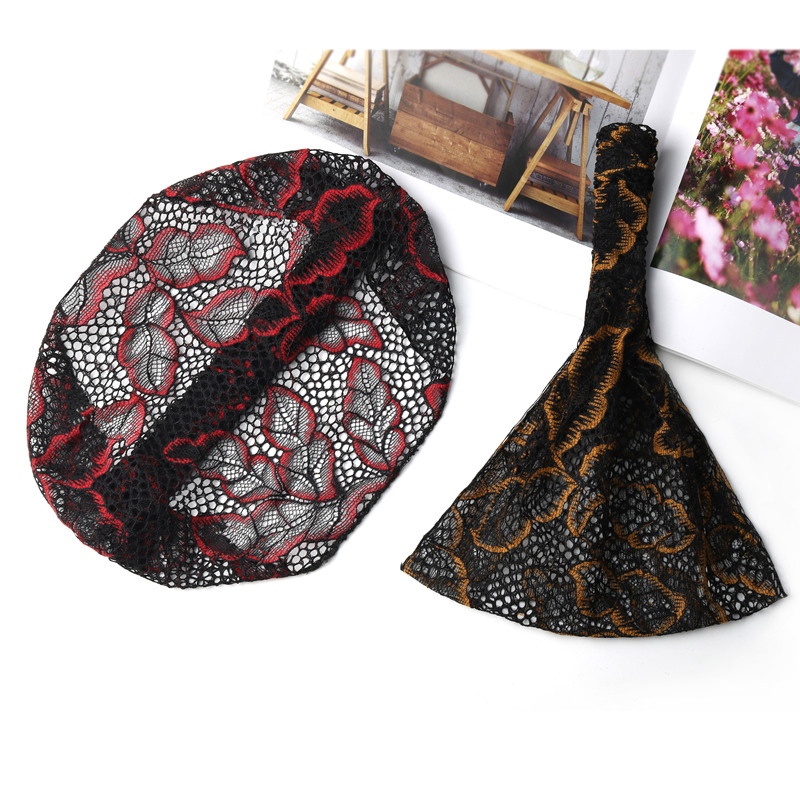 Lace hair with a thin section of wide side female mesh red headscarf breathable wash face Korea hollowed-out hair stir-covered white hair head hair dressing