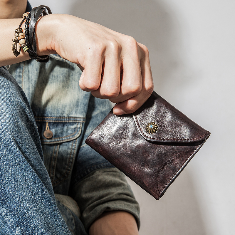 Men's full cow leather Little wallet Male Short Fold Soft Leather Retro Handmade Genuine Leather Money Clip Woman Small slim and small