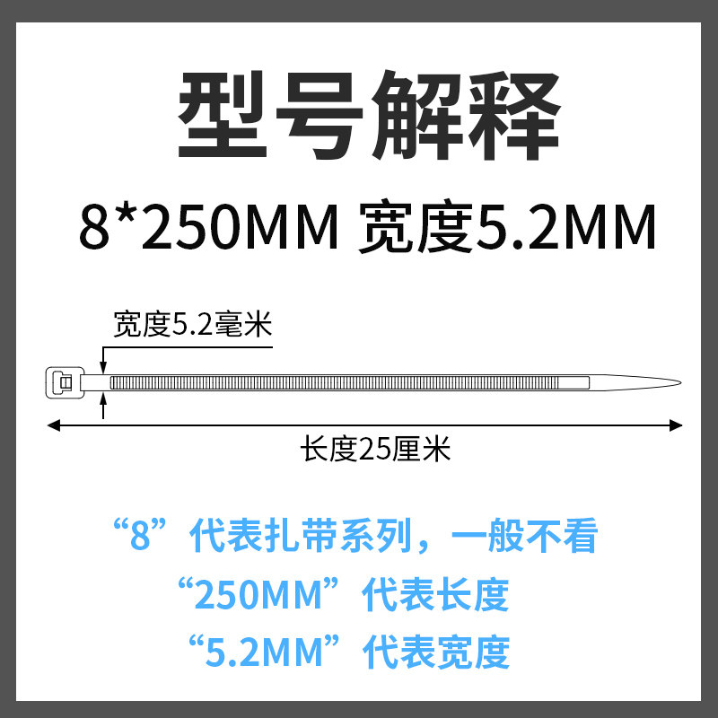 Black self-locked nylon tie 8 * 250mm plastic fixing binding wire with bale harness with strangled dog buckle