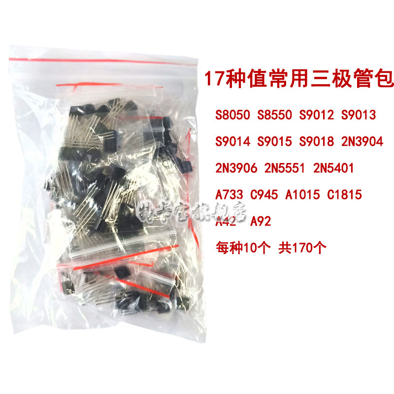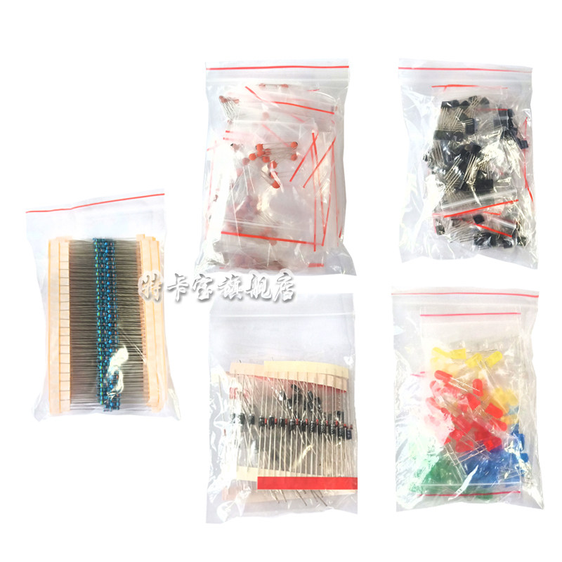 Gift pack=7 component packs, 1 pack each, a total of 7 packs, 30 values, a total of 600 metal film resistors, a package of 17 values, a total of 170 transistors, a package of 12 values, a total of 120 transistors, a package of 12 values, a total of 120 transistors, a package of 12 values, a total of 120 transistors, a package of 12 values, a total of