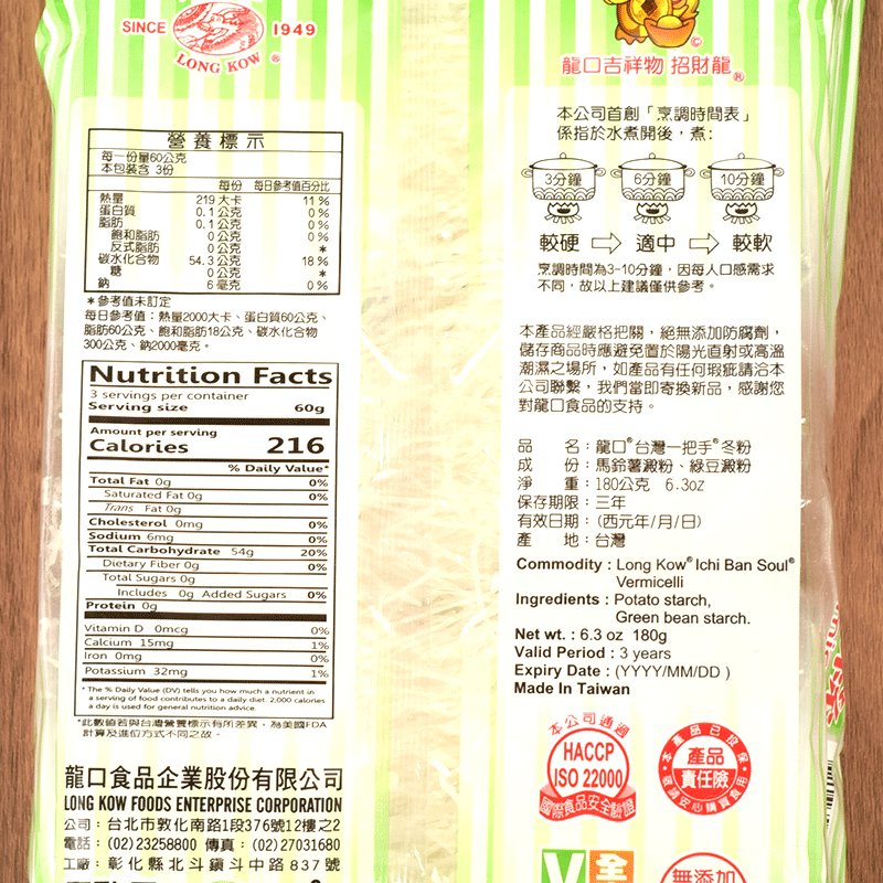 Buy 2 Zhengzong Taiwan One handle winter powder 180g Longkou fan Winter Powder Duck Quick Food Special Grade Green Bean Potato Flour
