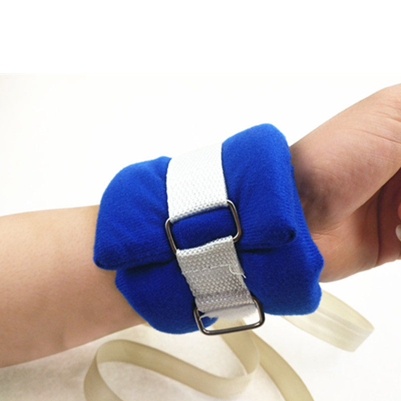 Bed patient restraint with binding belt hands and feet fixed with belt harness fixed with elderly anti-grasping bunches bracelet