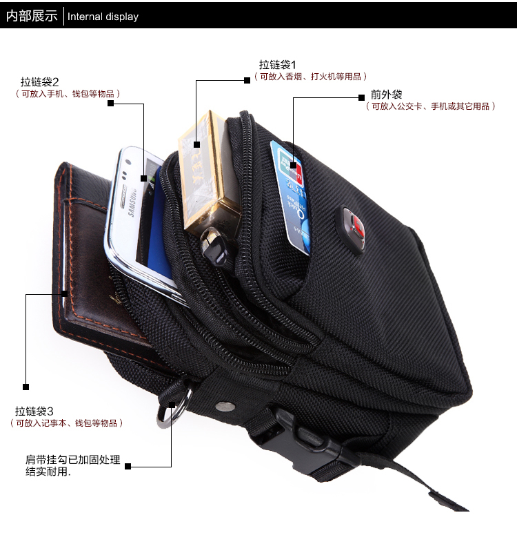 Zipper pocket mobile phone pocket ID slot