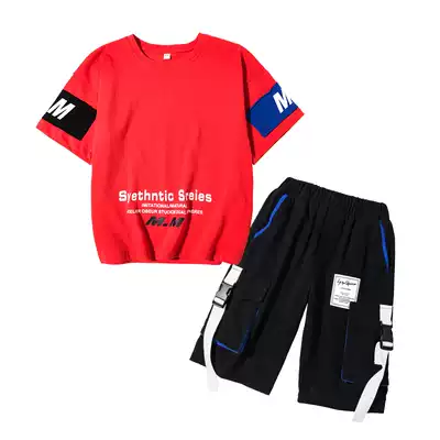 Children's set boys summer suit 2021 new middle and Big Boy summer day Korean version of foreign handsome short sleeve tide clothes