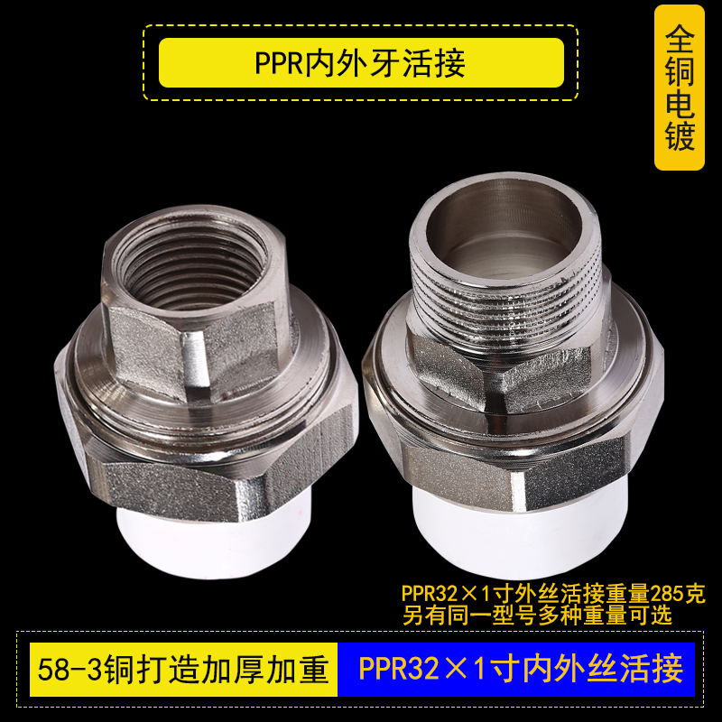 ppr32 copper active joint 4 points 20 6 points 25 1 inch internal and external wire hot-melt heating water pipe fitting active joint thread
