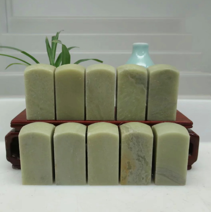 Fine Grinding Green Fields Stone Frozen Stone Round Head Chapters Practice Zhang Jinshi Seal Engraving Seal Stone 2 5 * 2 5 * 5 A box of 10 pieces