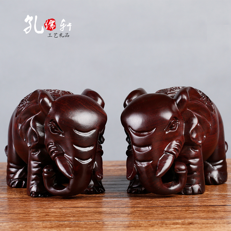 Wood carving elephant ornaments auspicious elephant a pair of rosewood ebony wood solid wood home decoration housewarming opening craft gifts