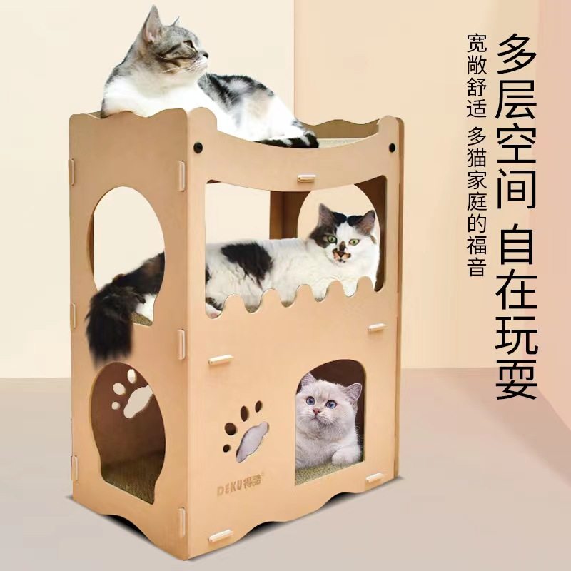 Bungalow cat house cat villa double-storey cat house cat house wear-resistant cat scratch board grinder large corrugated paper cat litter