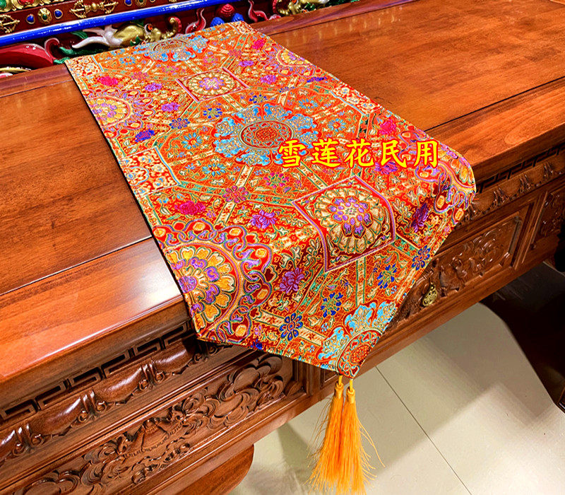 Tibetan satin fabric table flag vintage desert Rose classical coffee table cloth bed tail towel double-sided table flag custom