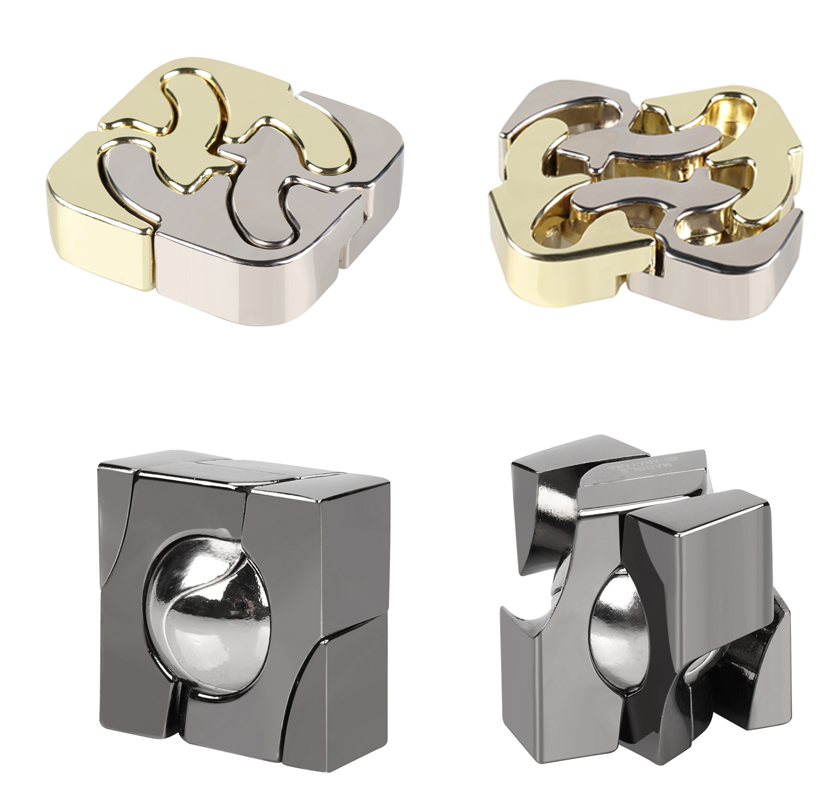 Japanese Magic Gold Puzzle Unlock HANAYAMA Genuine Solutions Ring Toys Develop Brain Cave Difficulty 5 Luban Lock