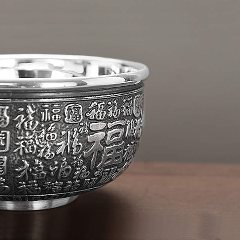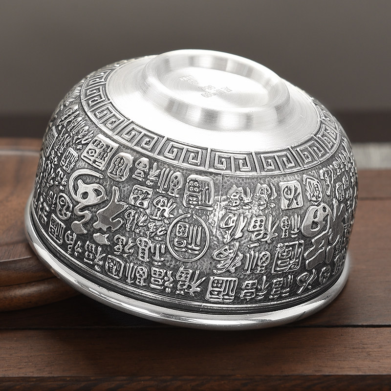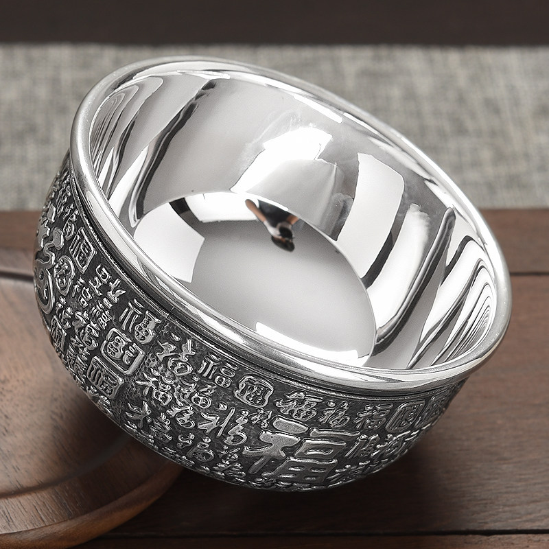 Tianxia Silver Tower silver bowl 999 sterling silver tableware set Baifu Silver bowl Silver chopsticks tableware set Household silver tableware