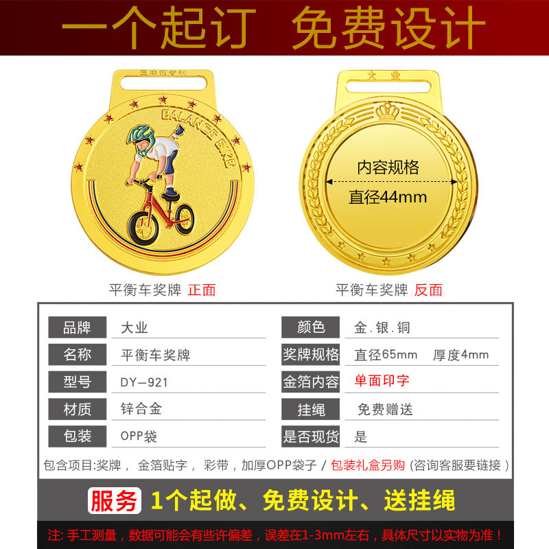 Bike Balance Car Race Medal Tailor Made School Children's Kindergarten Medal Making Memorial Gold Medal