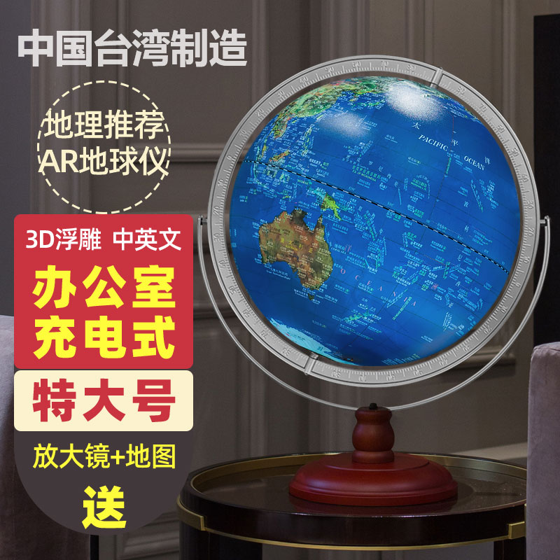 funglobe globe 43cm Taiwan manufacturing large universal large number office home swing decoration 3d Cubic relief high definition table lamp general manager's office meeting opening gift