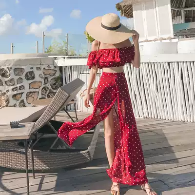 2021 new women's one-shoulder dress travel photo wearing suit Sanya beach skirt seaside holiday super fairy