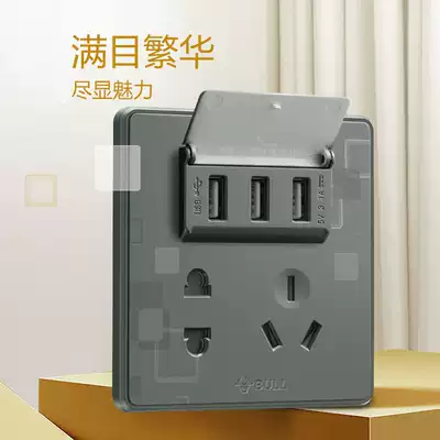 Bull socket flagship switch socket concealed 5-hole with 3USB fast charging multi-position USB charging socket g18 Gray