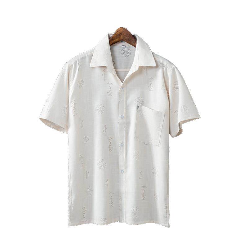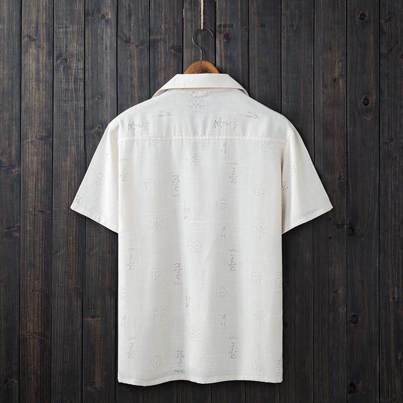 Summer middle aged men's linen short sleeves cotton linen shirt thin loose half sleeve turnover jacket Grandpa Dress
