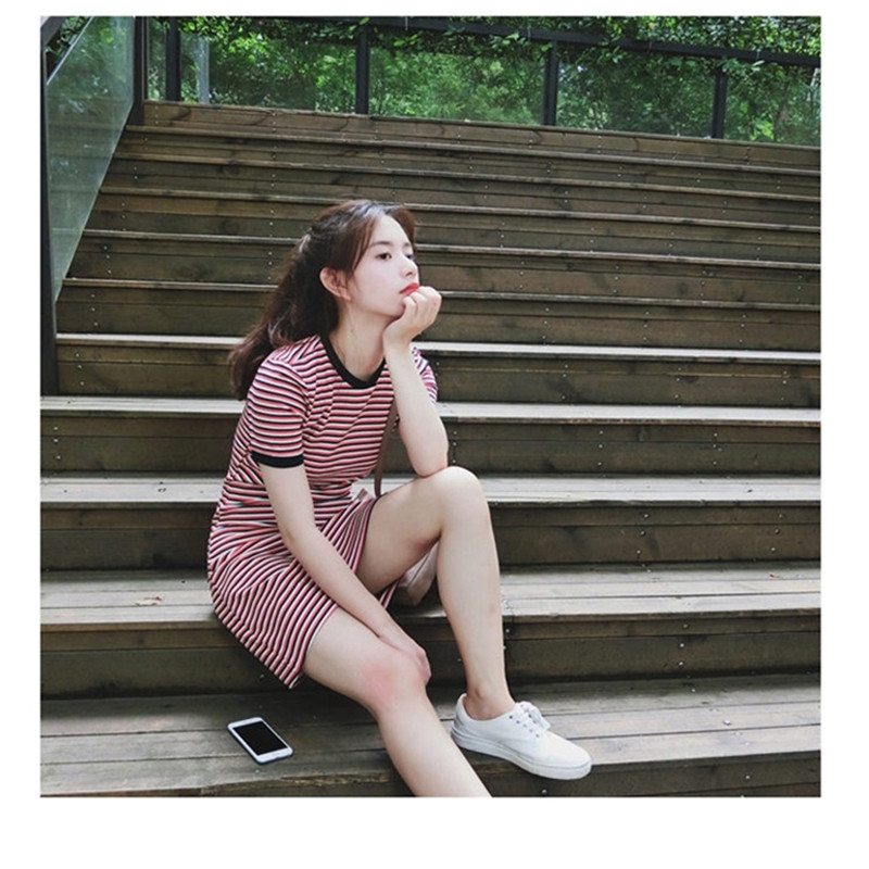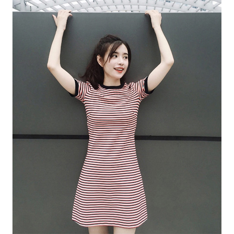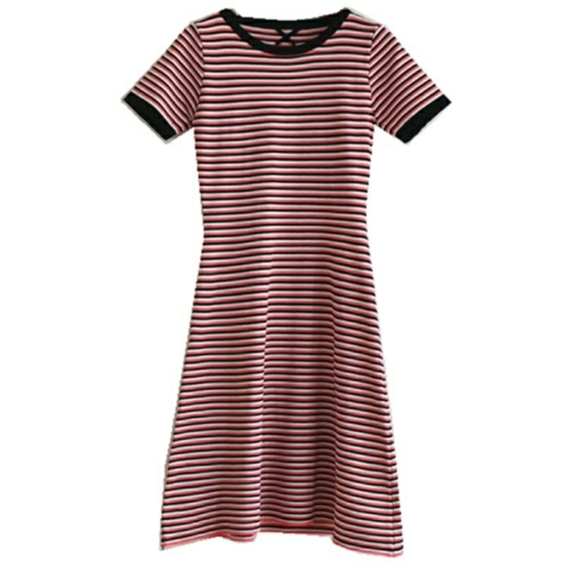 Europe station 2022 Summer new foreign dress Women's retro 100 lap collection waist display slim and thin fresh striped T-shirt Long dress