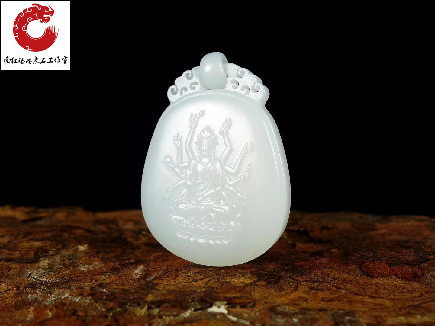 Xinjiang and Tian Yuzhu lipid white jade buddha blessed to hang the shining of the shining goddess of the mountain waters