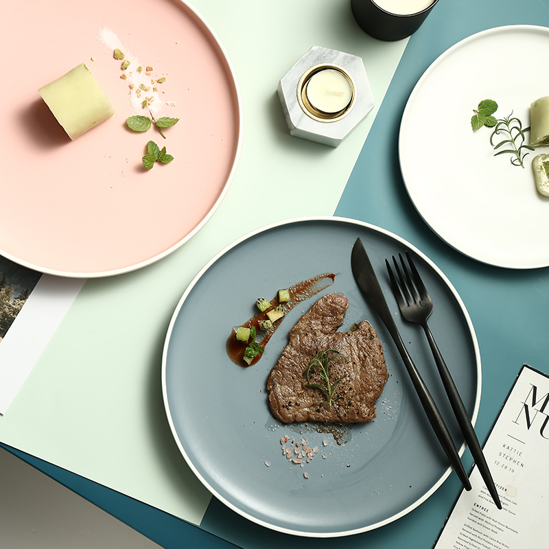 Nordic steak plate Western tableware plate Household creative net red breakfast plate Ceramic flat plate ins wind good-looking