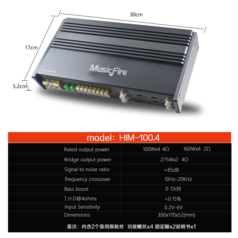 Imported car audio Horn four-way amplifier 4 channel 12V car dsp high power bass power amplifier 100x4
