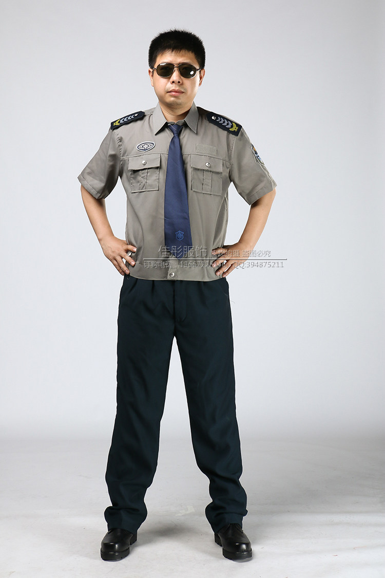 2011 new type of security short sleeve jacket style shirt Summer security uniform blouse grey twill fabric male style
