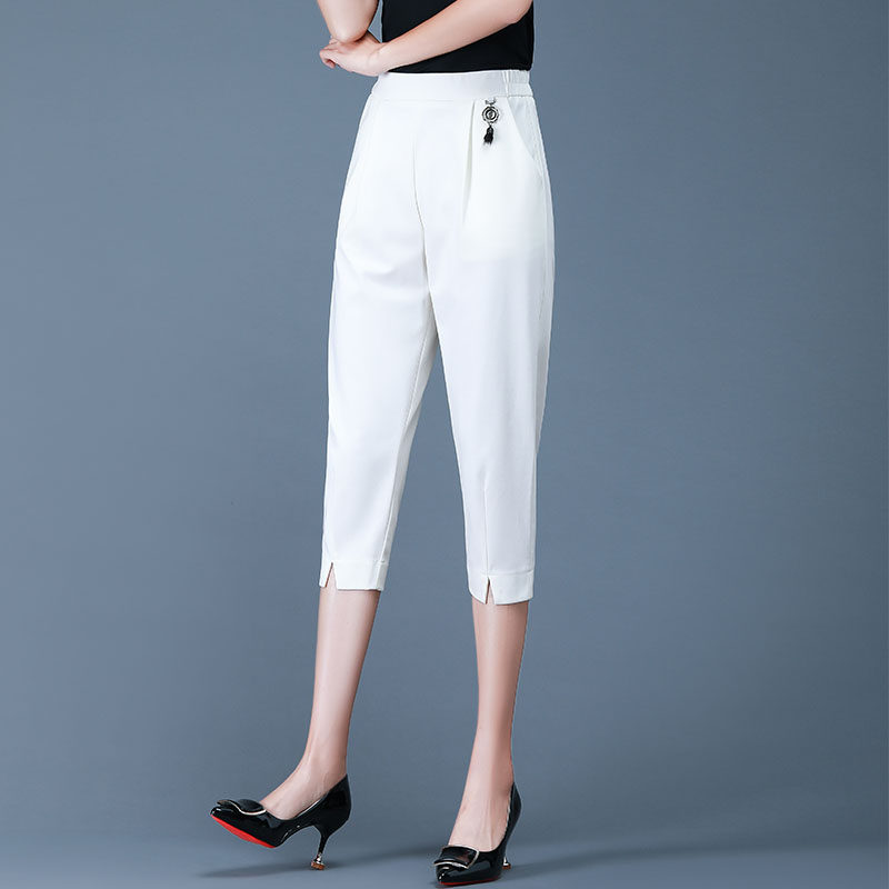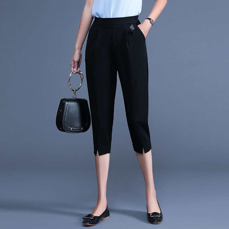 Fat mm harem cropped pants women's summer elastic thin section large size loose and thin 200 catties 7 points nine points suit women's pants