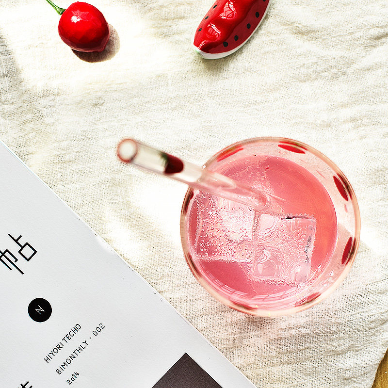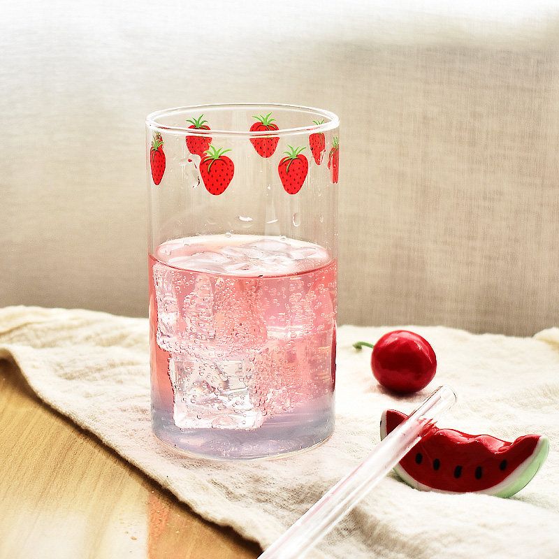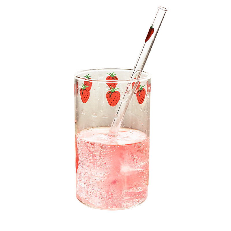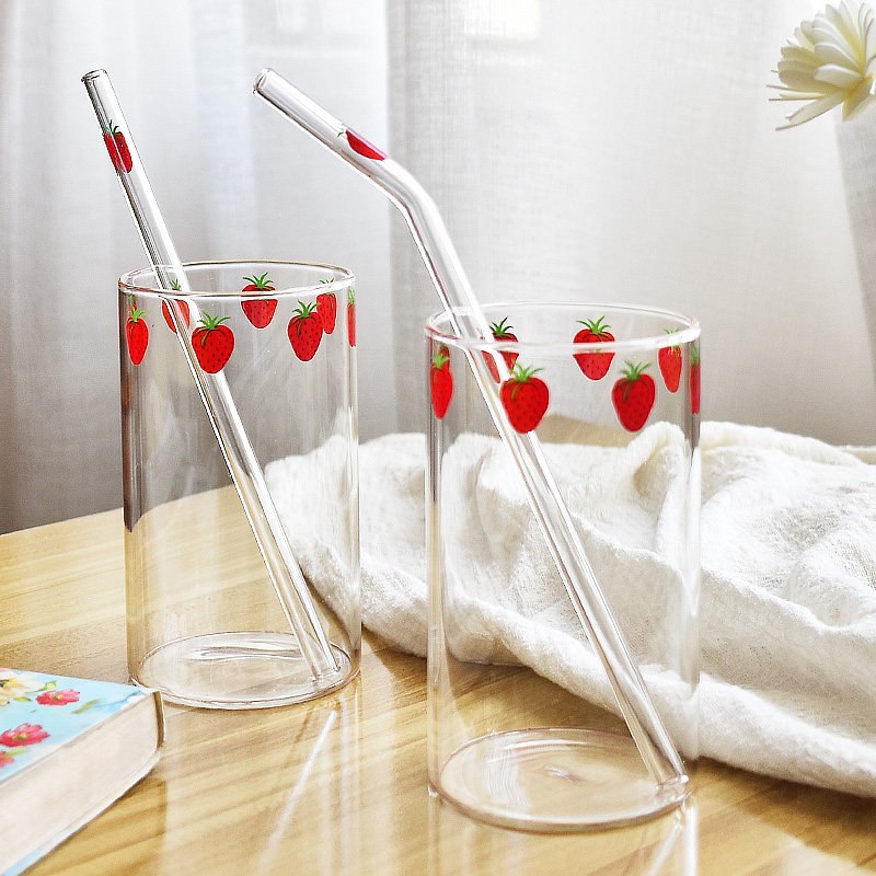 Xiwen Lejian Japanese glass water cup Heat-resistant juice cup Milk cup Net red strawberry student girl straw cup