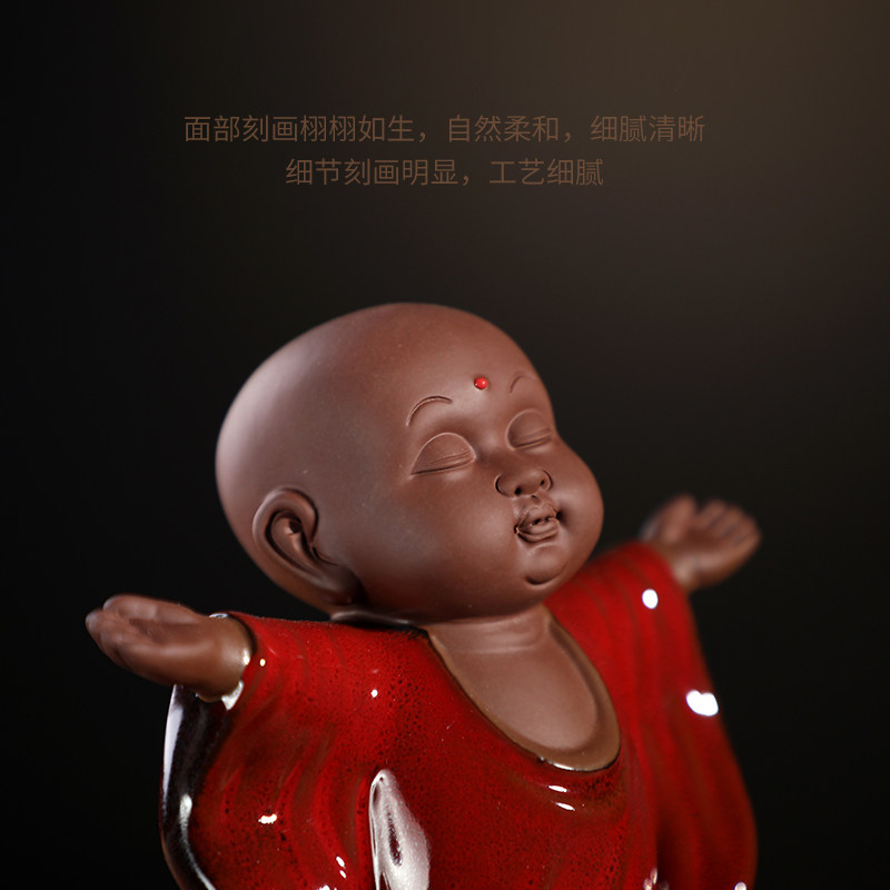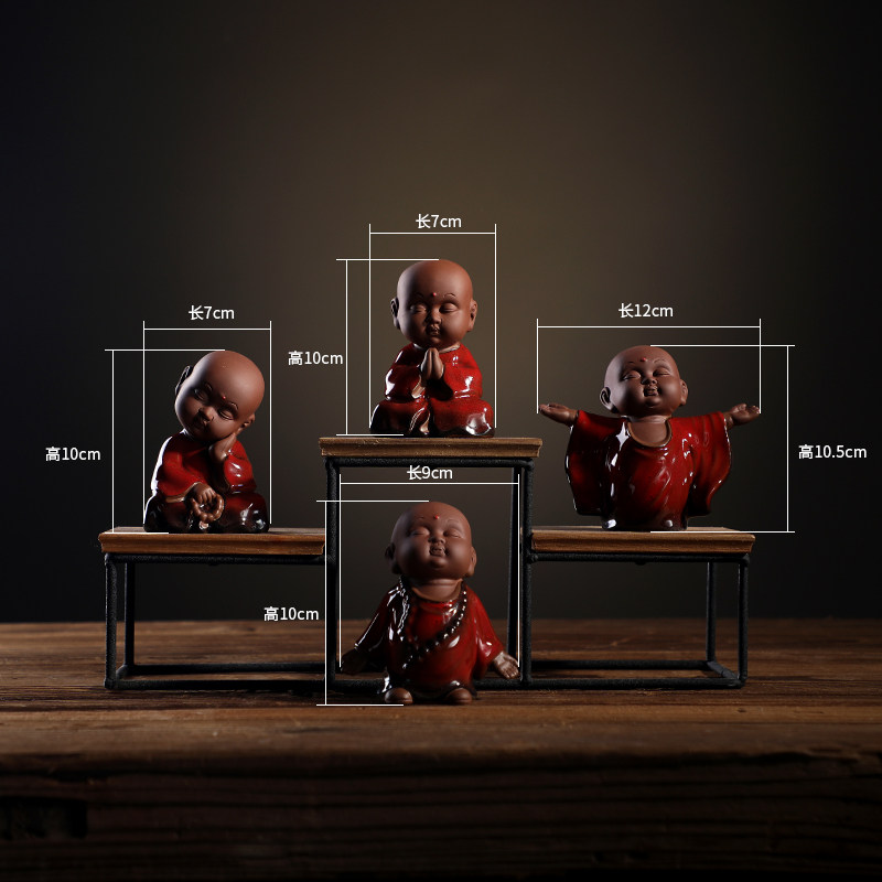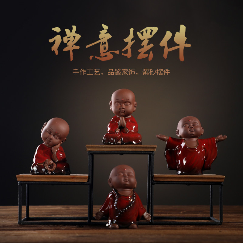 Dragon ware Zen little monk novice ornament ceramic figure purple sand living room study wine cabinet soft decoration craft gift decoration