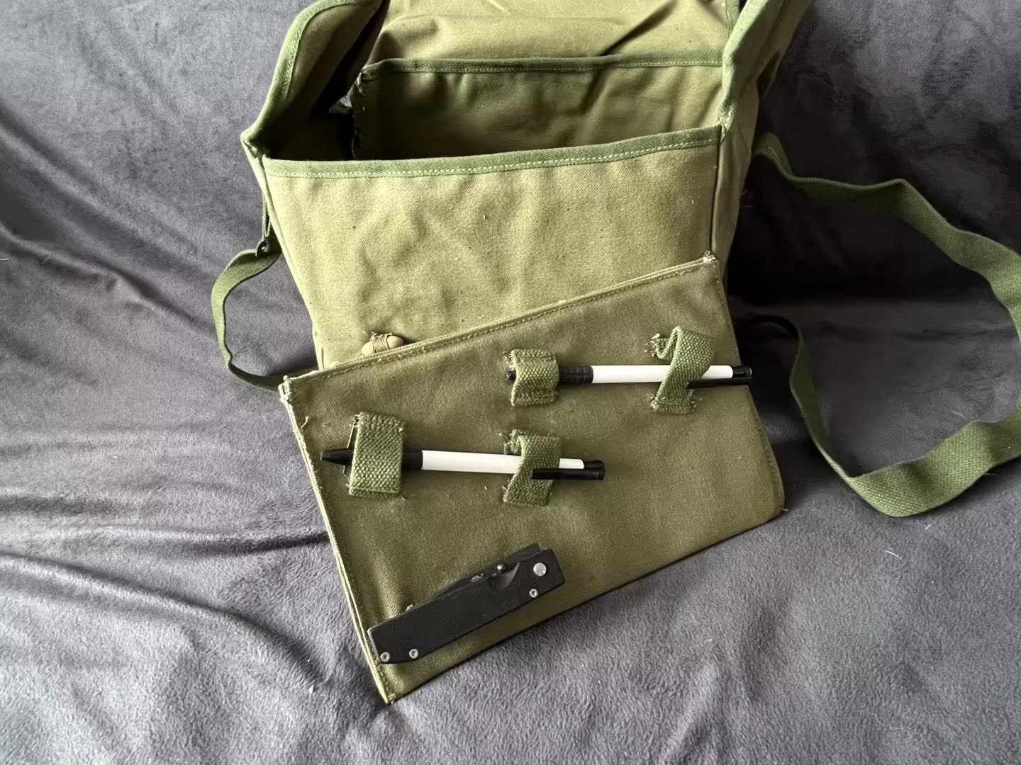 Public Hair Old Goods 80s 67 Style Tooling Canvas Satchel Retro Function Wind Mail Poor Bag Single Shoulder Commuter File Bag-Taobao