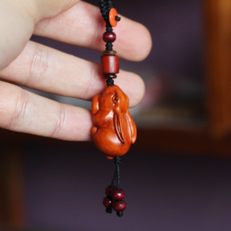 Red peach wood carving zodiac rabbit necklace bracelet pendant solid wood carving zodiac rabbit key chain buckle