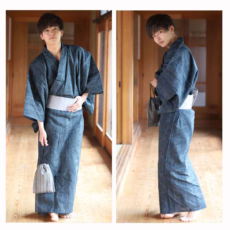 Traditional Japanese men's kimono Yukata pajamas Spark assembly Samurai Japanese home wear and clothing belt
