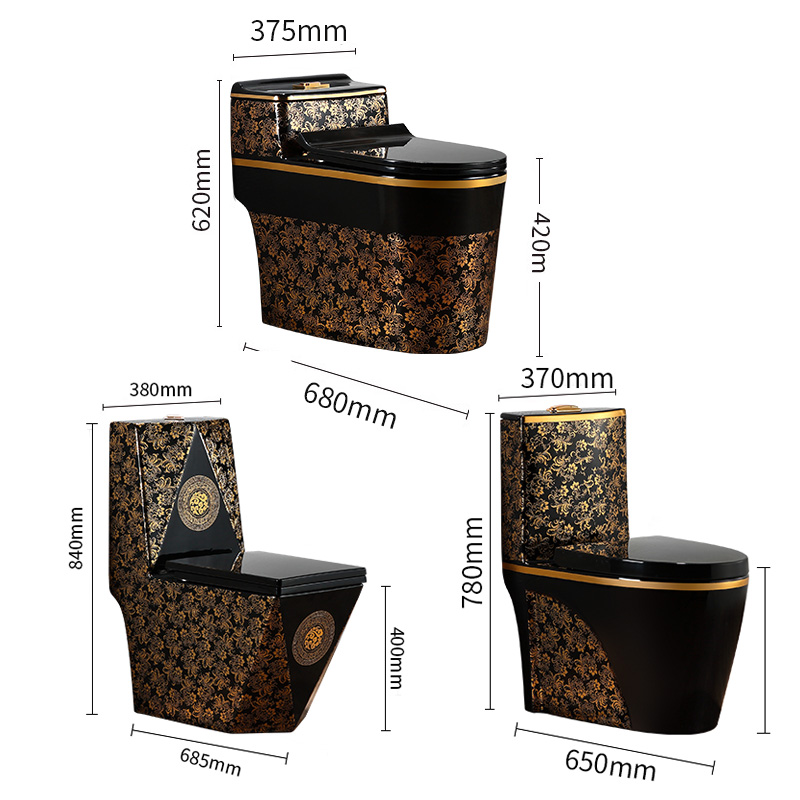 Home Color Toilet Black Gold Chinese Style Retro Pumped Personality Creative Ceramic Makeup room Siphon Style Seat WC