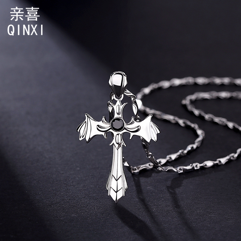 Couple necklace A pair of men and women sterling silver cross pendant Simple temperament men's trendy hip hop clavicle chain necklace
