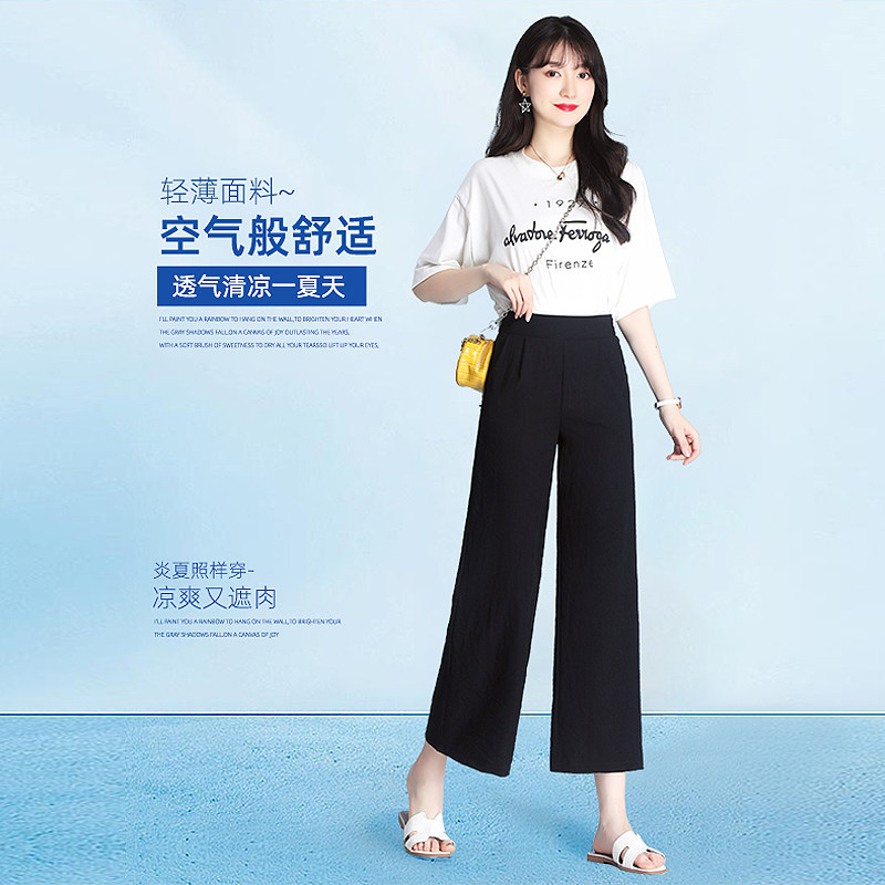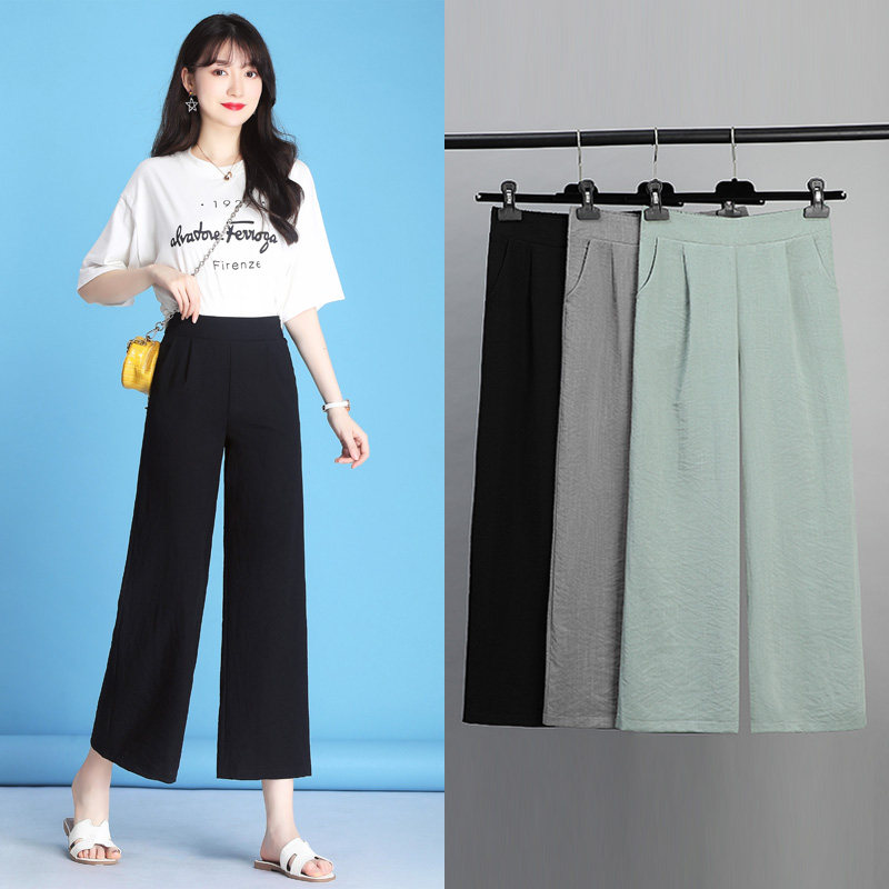 Ice Silk Broadlegged Pants Woman High Waist Pituitary Loose Summer Thin 90% casual straight drum cotton linen 100 hitch skinny Fat-Taobao