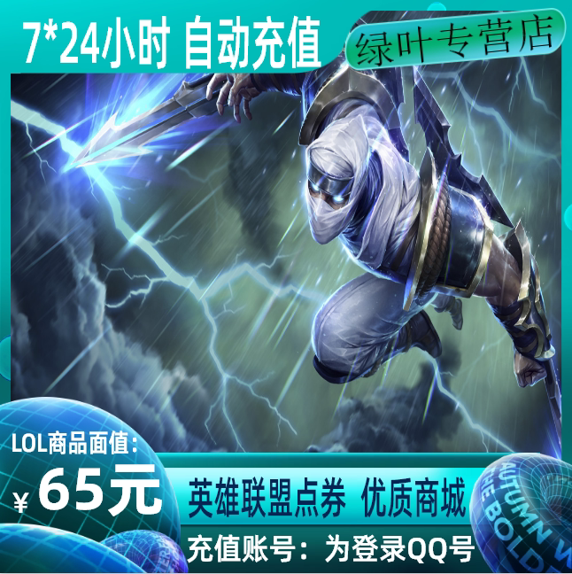 Tencent game LOL point roll) League of Legends 65 yuan 6500 points card) automatic recharge) instant access)