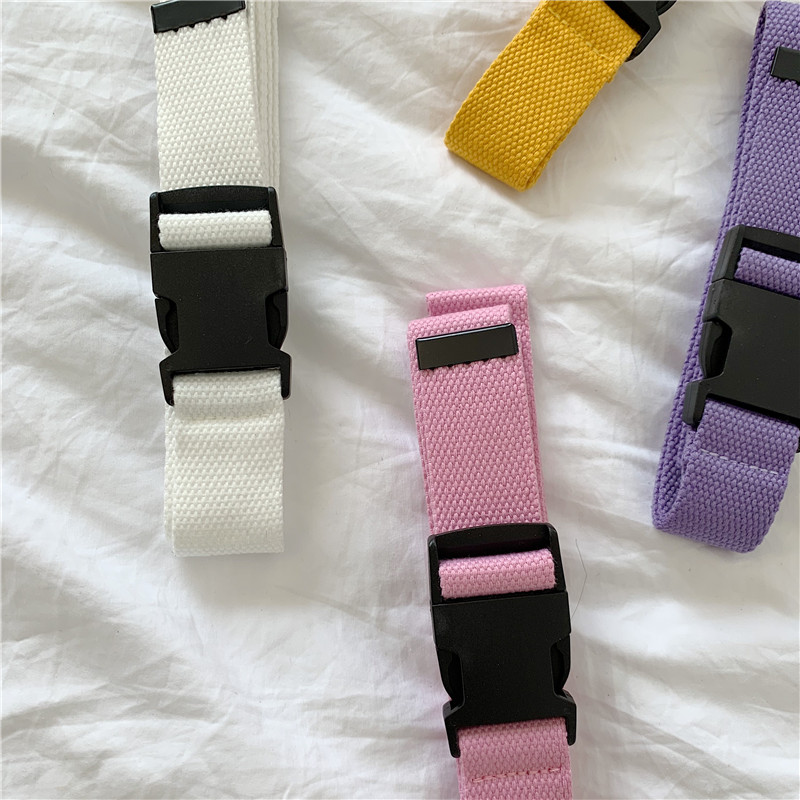 Plastic belt head inserts button canvas belt female South Korean ins hyperfire pure color belt student military training outdoor pants strap