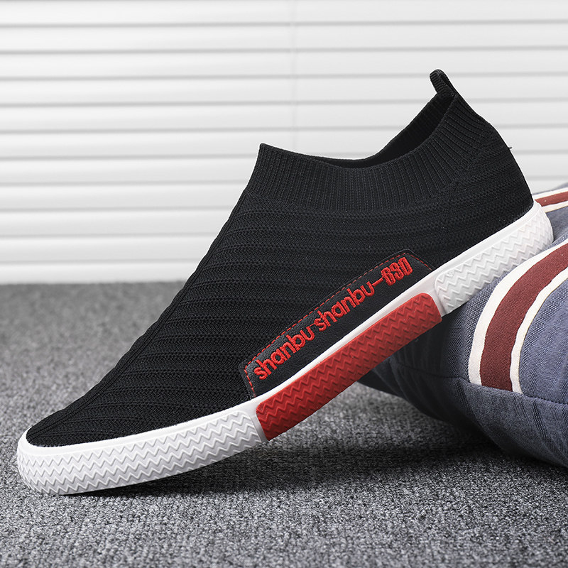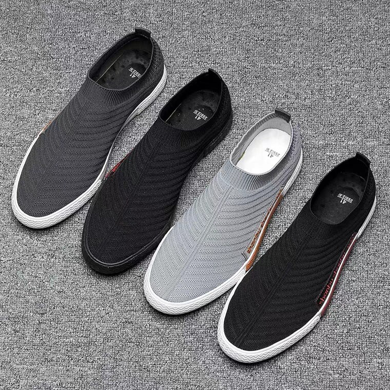 2022 autumn new men's shoes casual shoes Korean version of the trend of flying woven breathable canvas shoes lazy slip-on mesh shoes men